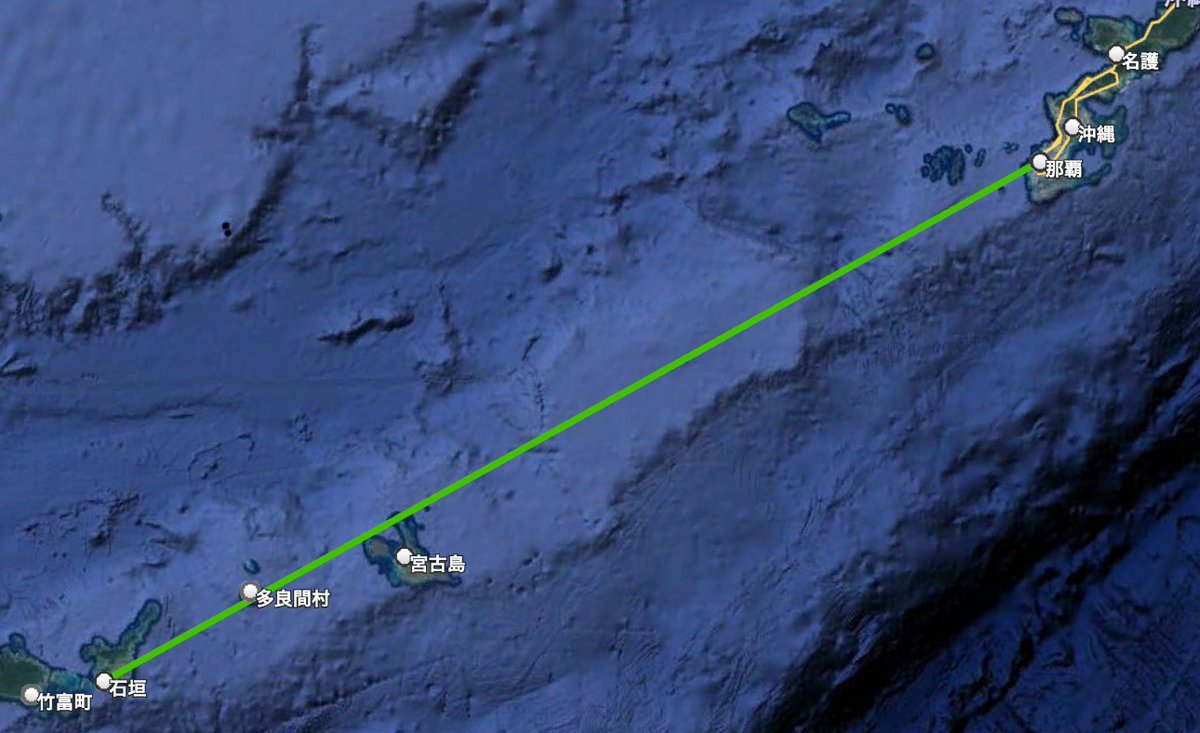 @tzYbHjEbLvnRi9w ちなみに沖縄県全体で見てみると、那覇〜石垣が東京〜大阪とほぼ一緒 pic.twitter.com/FuCV5Dnjpz